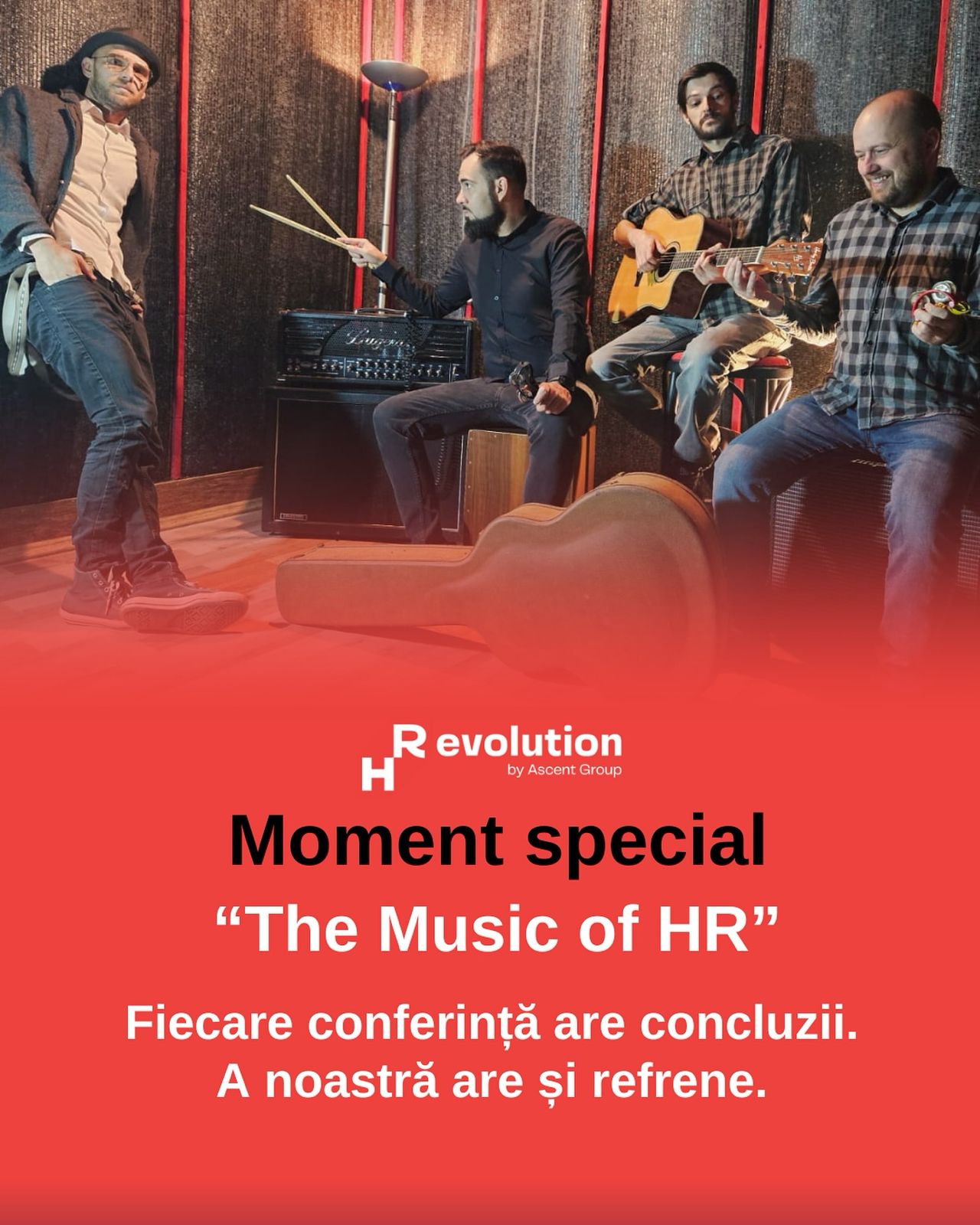 Pentru că la #HRevolution nu există „doar conferință”, ci energie, conexiune și vibe autentic, vom încheia ziua cu un moment cu adevărat special, cu trupa The Jammers. Ei ne vor ajuta să transformăm finalul conferinței într-un moment cu energie bună și improvizație și să ne reamintească că învățarea și bucuria merg perfect împreună.