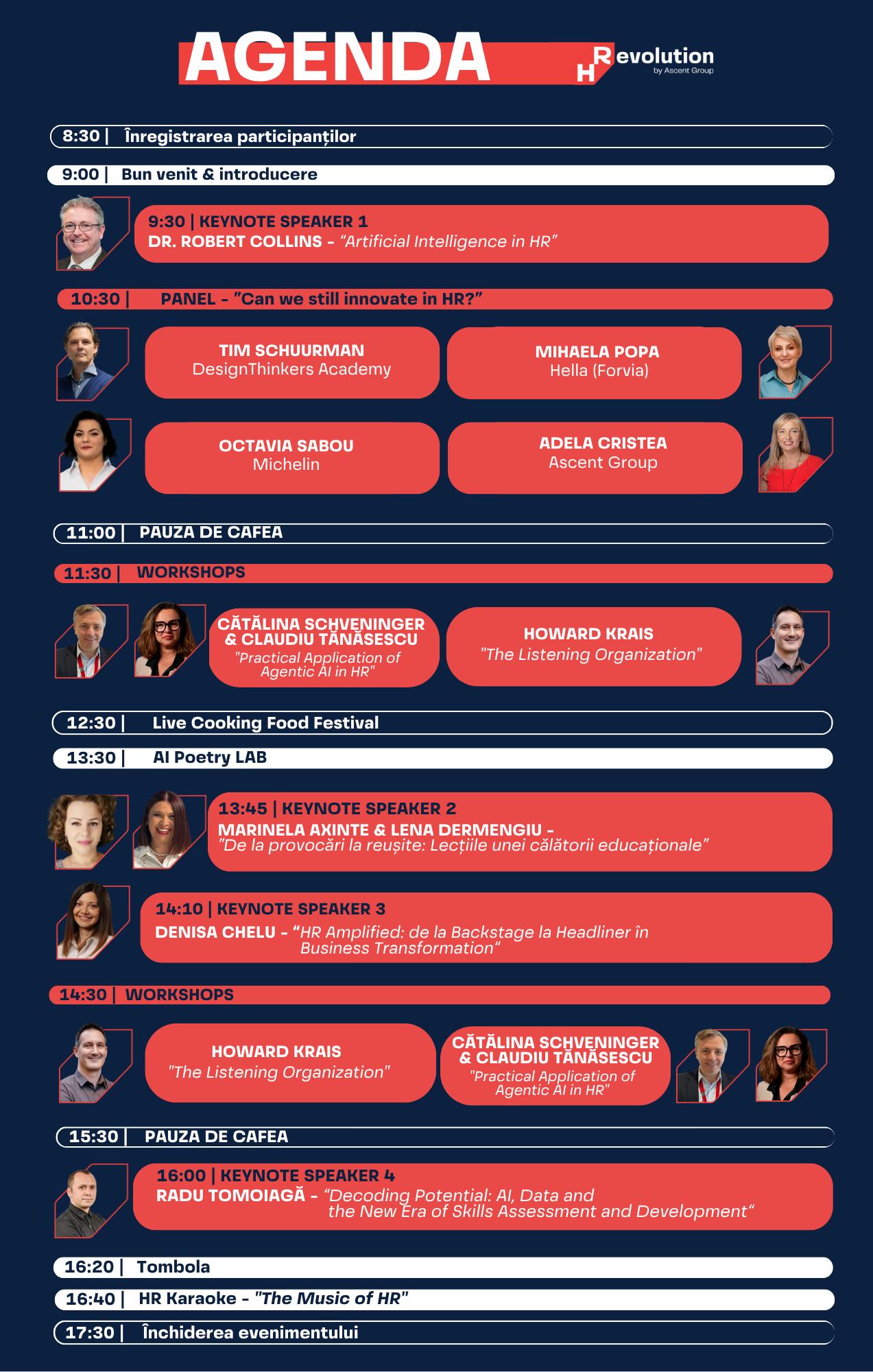 La HRevolution, am promis că vă vom oferi o experiență unică, plină de surprize — și ne ținem de cuvânt. Vom explora și teritorii mai puțin obișnuite în conferințele de business, iar pentru aceste momente vom avea câțiva invitați speciali din lumea artelor, muzicii, sportului și nu numai.